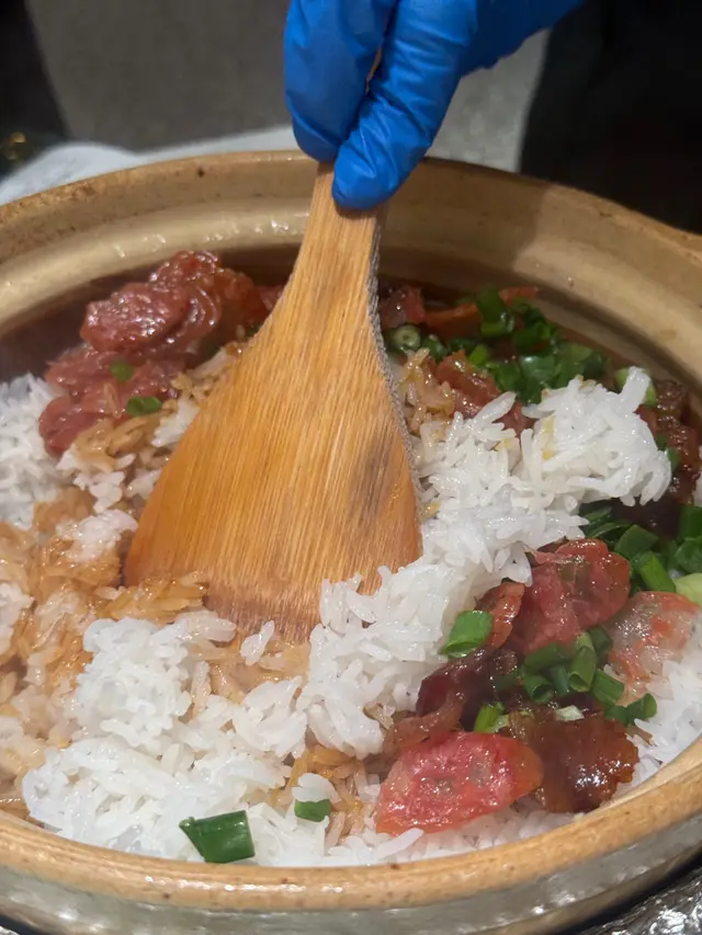 臘味香氣撲鼻,飯粒焦香吸汁!😋 臘腸同臘肉鹹香,建議加蔥花,層次更豐富!🥢