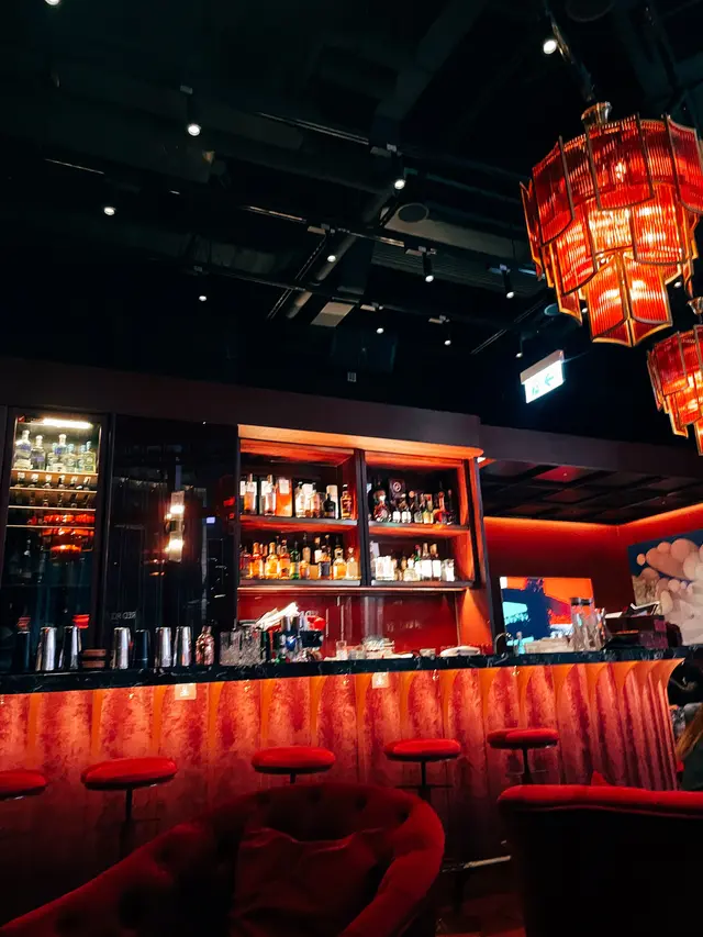 有一間超級靚嘅紅色主題酒吧
