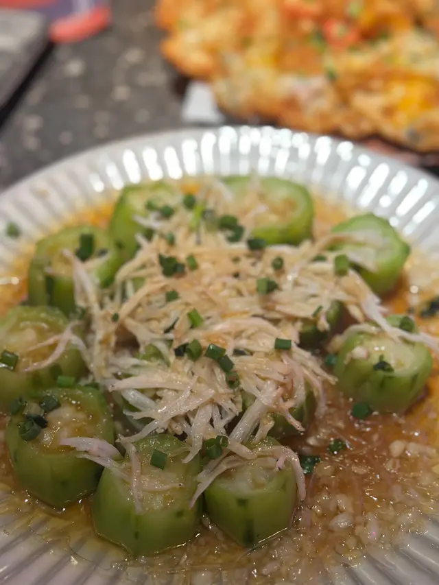 勝瓜好細心去曬皮,滿滿銀魚仔同蒜蓉