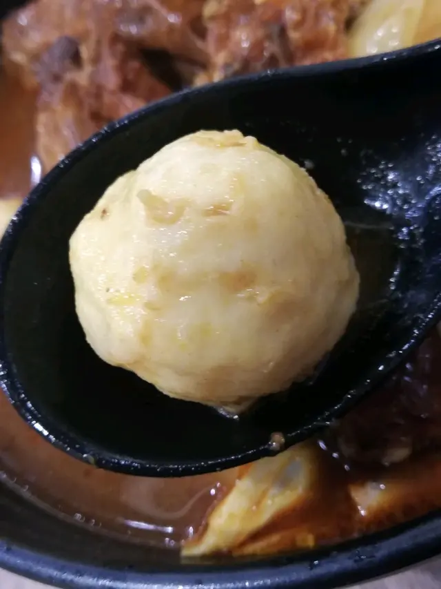 墨魚丸,依到既墨丸比較有咬口,咬落重有細細粒既墨魚碎!