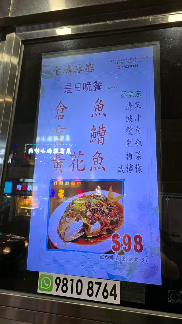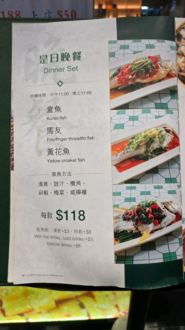 以為所有客人熟讀佢哋份餐牌咁,入去問下有無蒸魚餐,因為帶住長者驚賣晒,點之俾佢反問我要咩魚,仲以為我要乜有乜,再問下佢仲有咩魚可以叫,串串貢咁話:「有鯇魚、倉魚、黃花魚、盲曹。」但佢自己再話:「不過今晚冇盲曹,晚晚都係呢D㗎啦!」,阿先生,你餐牌無鯇魚,點叫晚晚都有呀!仲有,屏幕蒸魚餐價錢同本餐牌價錢相差$20,埋單又要睇清楚。