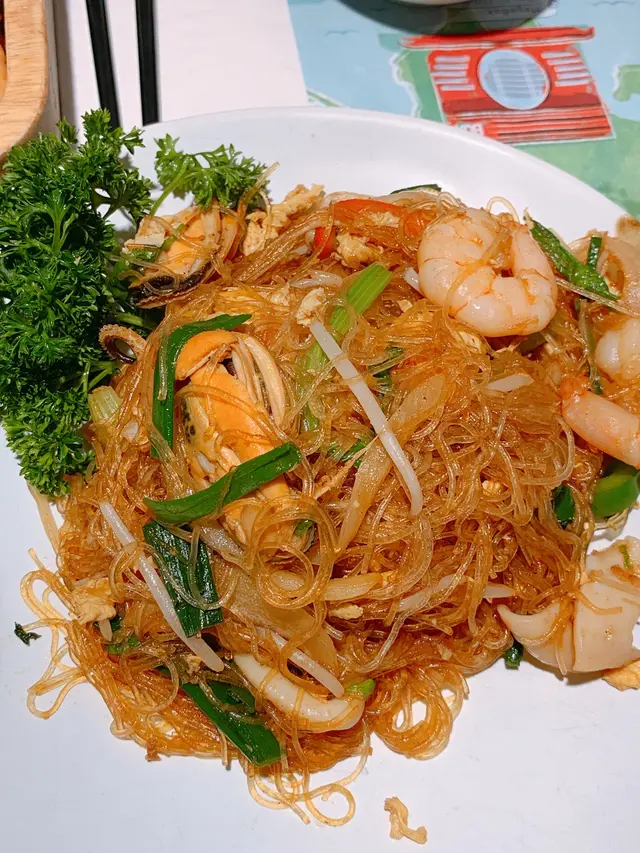 另外佢個鳳爪沙律好惹味,薯仔薄餅淡淡薯仔,小食來講我非常推薦!另外都叫咗個炒金邊粉同印尼炒飯,味道唔錯!食到最後加多碟炒通菜,大家都飽到差啲食唔落啦!