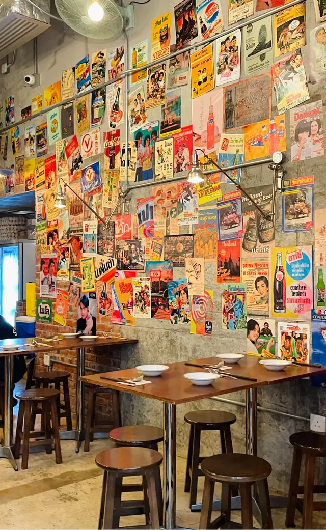 餐廳裝修設計走大排檔風格,牆上貼了大量泰國懷舊海報,色彩繽紛且充滿濃厚的泰式復古風情。