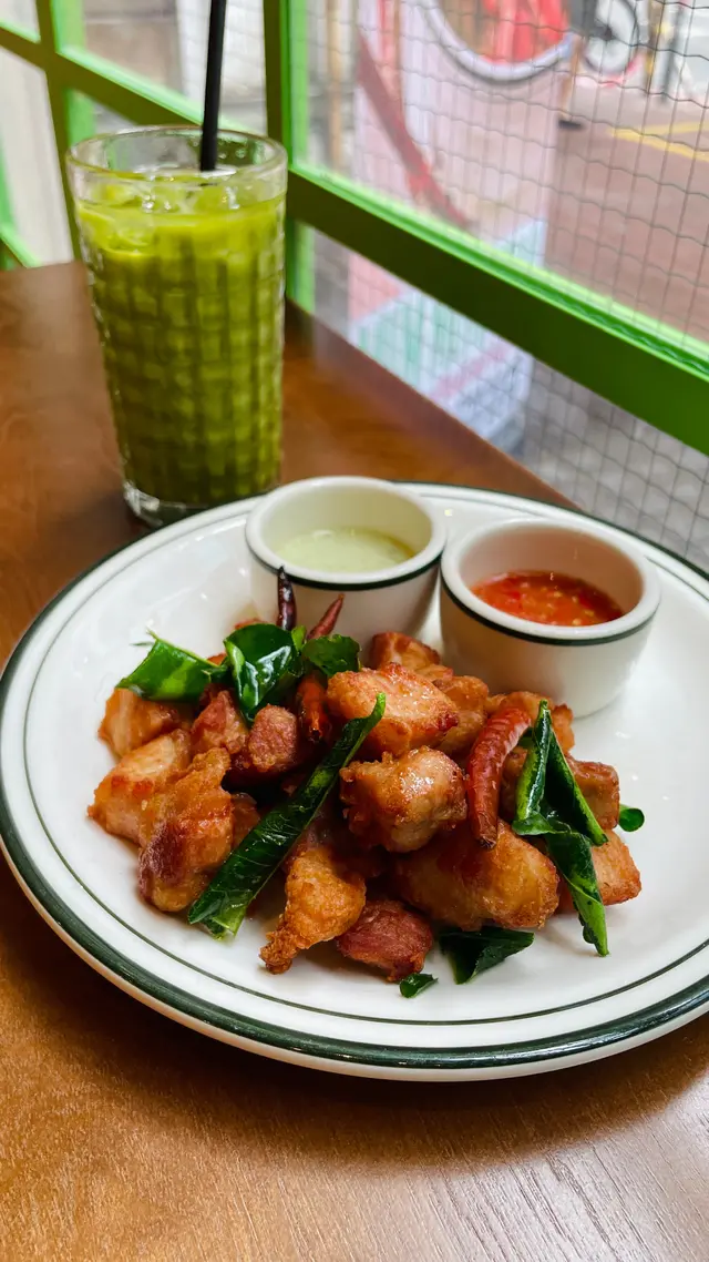 五花腩外皮酥脆,再沾上青醬或泰式辣醬,風味層次更加豐富。