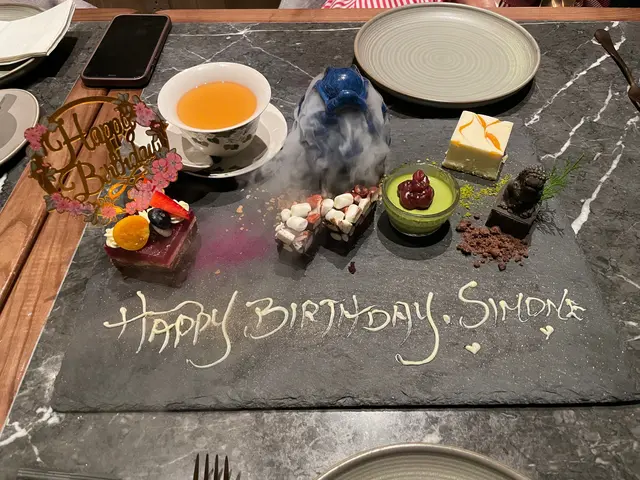 要特別一讚係個甜品拼盤,參考下面嘅圖片,大約有六至七款甜品。我作為一個唔係特別鍾意食甜品嘅人都覺得唔錯,再配合乾冰嘅煙霧效果,打卡效果一流,而且餐廳亦都肯配合去寫生日碟。如果你係甜品控就千萬不要錯過。