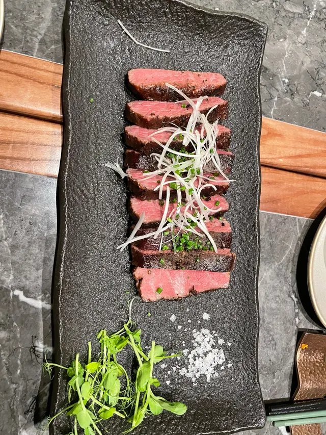 有好多款食物可供選擇,令人眼花撩亂。最後我哋一行三個人,叫咗梅酒啫喱鵝肝凍、北寄貝沙薑漬、五頭鮑魚各一客、二十四小時慢煮牛肋肉