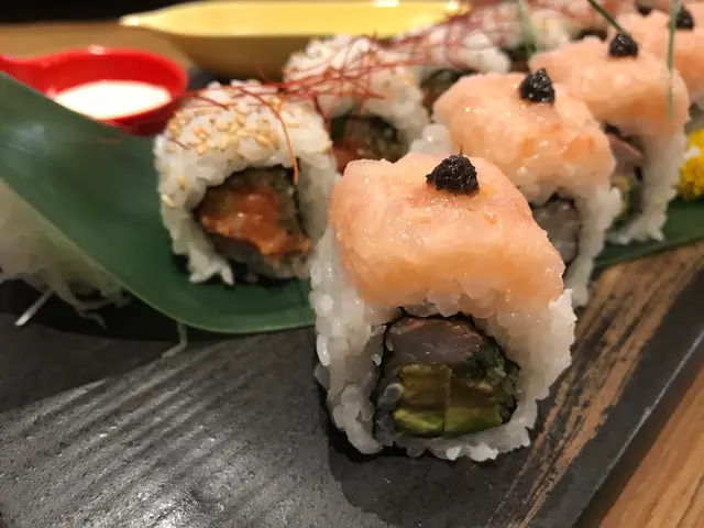 肥佬要食飯,所以叫左壽司比佢滿足下!黑松露甜蝦卷同埋辣吞拿魚腩卷。前者一定無輸,因為剛剛沙律既甜蝦非常新鮮!不過今次係將d甜蝦整碎佈滿壽司卷上面。同平時食既甜蝦卷多多一個口感。中間有蝦有牛油牛。牛油果剛好熟透,所以令到食落去多一份好滑既感覺。加埋黑松露既香味層次比出面食到既甜蝦卷或者炸蝦卷豐富。