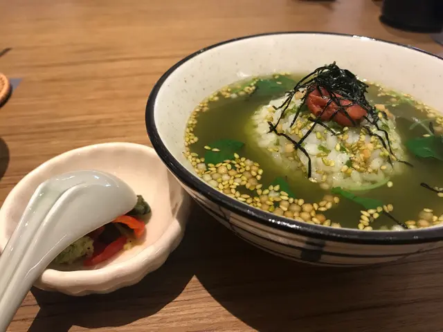 梅子茶漬飯,食完咁濃味既野食返個清爽少少既飯!可惜梅子味唔夠突出,但茶味香,唔錯!