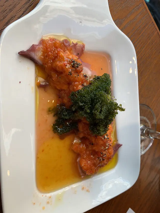 叫咗一個好特別嘅八爪魚小食,配埋Sea grapes 勁爽口,佢既醬汁酸酸地都幾開胃