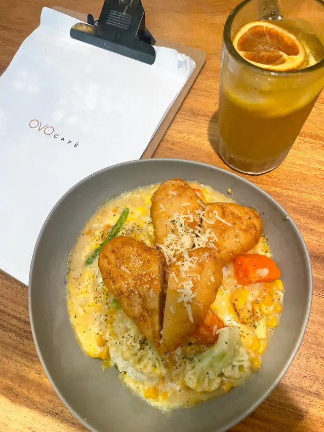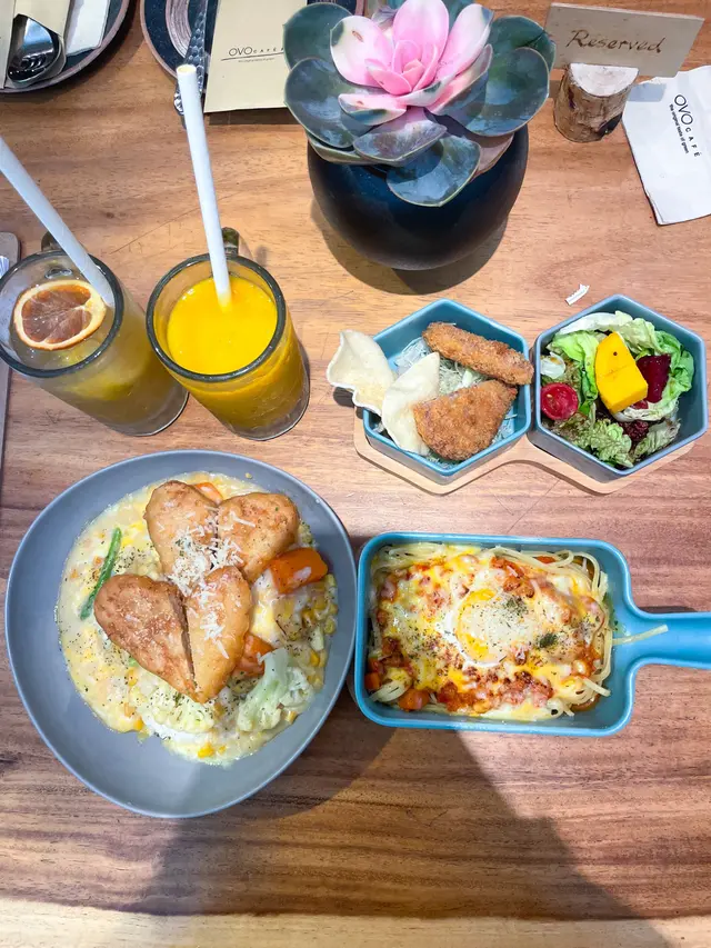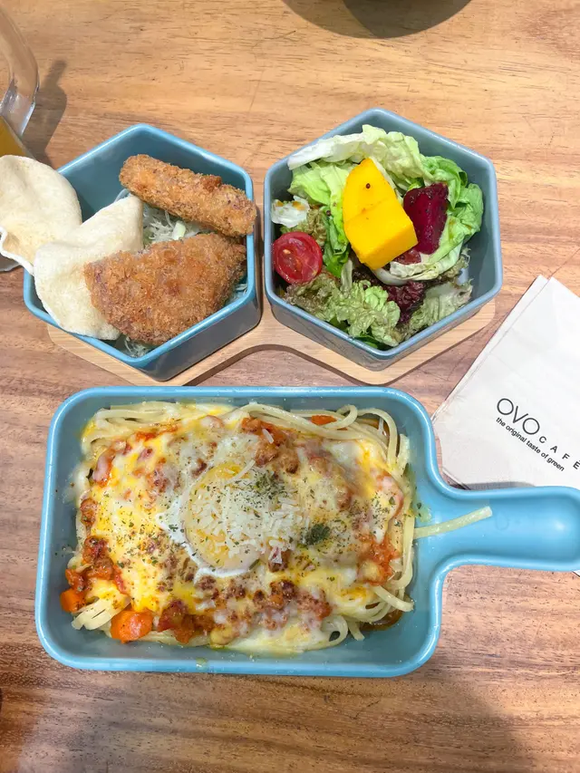 成日多肉少菜,有時想食下素食,估唔到係灣仔舊街市會有一間素食餐廳🤩OVO Cafe 的樓底非常高,令室內充滿了自然的光線💫,而且店內有好多花草點綴💐🌿,讓人彷彿置身在一個綠意盎然的花園裡😍。這樣的環境,讓人不自覺地放鬆起來😊