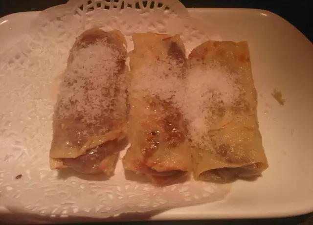 芋頭腐皮卷 - 此甜點好特別, 芋蓉夠甜及料多, 腐皮卷上有椰絲, 皮脆夠香口