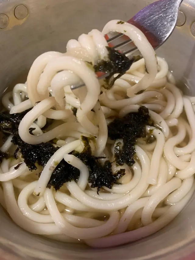 烏冬:烏冬滑溜,湯底鮮甜,加上紫菜,味道更香濃。