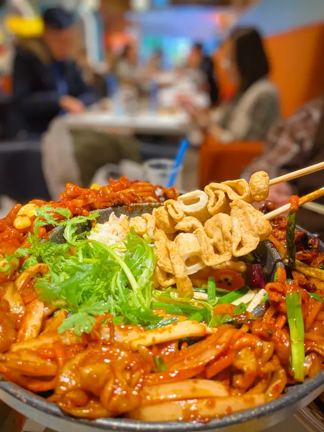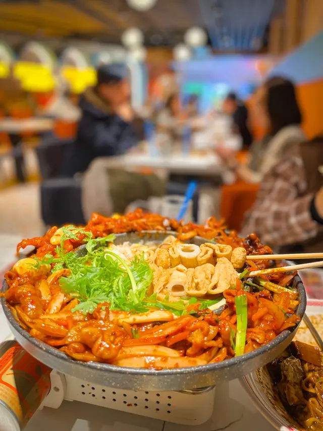 個個都叫呢個鍋,都幾SIGNATURE😆佢有2款鍋揀,包括韓海熱炒海陸空同鐵板熱炒海陸空,今次叫咗鐵板熱炒海陸空 ☺️佢入面有魚糕湯、魚蛋etc. 紅色果啲係自選嘅辣炒小章魚🐙、豬腸😋偏辣!不過好韓🇰🇷仲有香辣無骨雞腳🌶️全部嘢都愈食愈上癮,唔想停🫢隱藏食法應該係將紅色嘅嘢放入湯都沖淡冇咁辣😬一大班人SHARE啱曬!