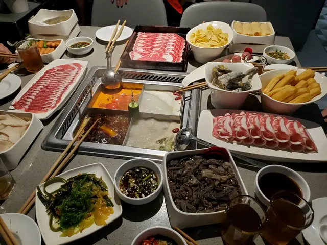 服務員先比個圍裙再拿了保鮮袋,濕紙巾,頭髮橡筋圈給我們用,介紹用ipad點餐,任飲(檸檬茶, 柑桔水,熱豆漿)每位要加$15,自助調味醬料每位$18 (隨你需要)。點了四格海底包括豬骨湯,糊椒湯,蕃茄湯底好夠味,麻辣湯是標準麻再加辣,可能我食得辣,第一啖食落口夠晒辣但唔會即刻上腦標汗口麻的感覺。我哋點了每人任飲,