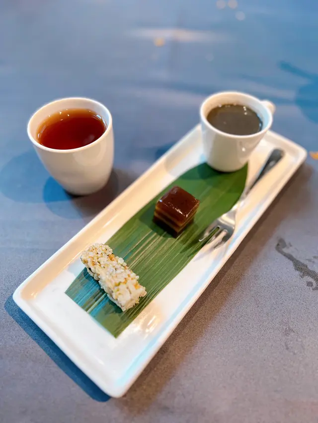 甜品三味有芒果布甸、紅豆沙同芝麻糊,小份但精緻,甜度啱啱好,食完有種溫暖嘅滿足感,完美收尾!