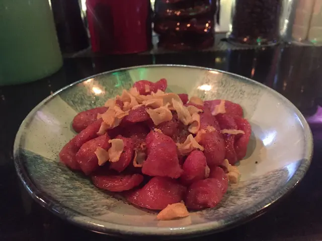 上面系有一片片嘅炸蒜,仲有甜甜地既蜜糖。同友人食到停唔到口😋