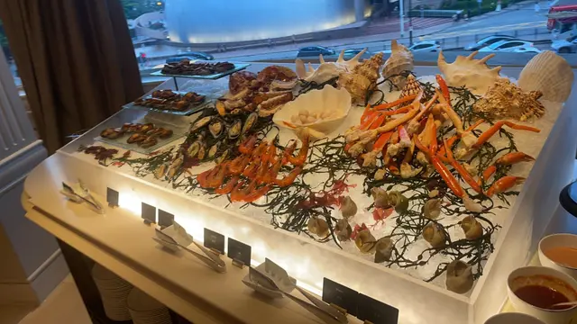 刺身有三文魚吞拿魚帶子象拔蚌、凍海鮮有蟹腳鮑魚青口凍蝦、熱食只有約20多款,威靈頓三文魚外皮唔夠酥脆,牛扒質素算幾好,但係如果食唔慣太生嘅人完全食唔慣,老實講回本位除咗鮑魚凍海鮮同埋牛扒,真係冇其他,老實講收我呢個價錢唔緊要但係都要俾多啲回本位,呢個價位冇生蠔鵝肝拖羅真係唔收貨,