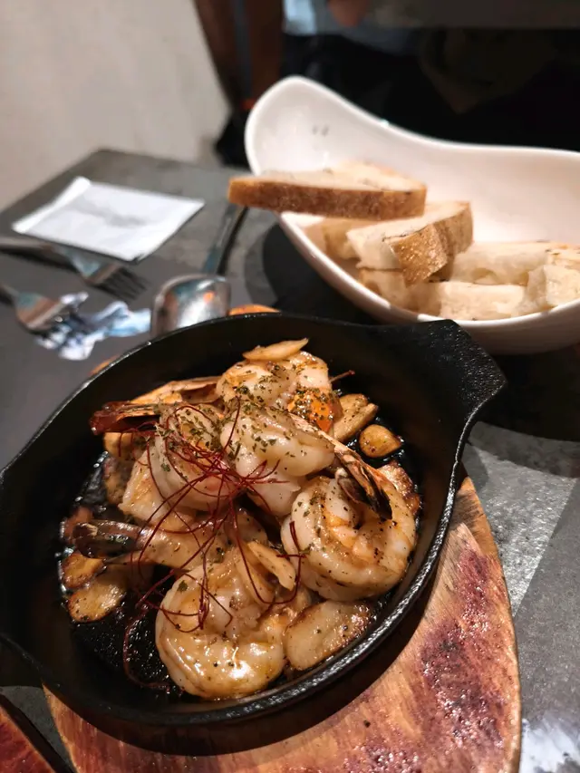 鮮蝦的肉質緊實鮮甜,與濃郁的蒜香欖油完美融合