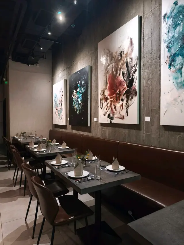 餐廳的裝潢以木質桌椅搭配鐵藝吊燈,營造出一種既溫馨又時尚的氛圍。