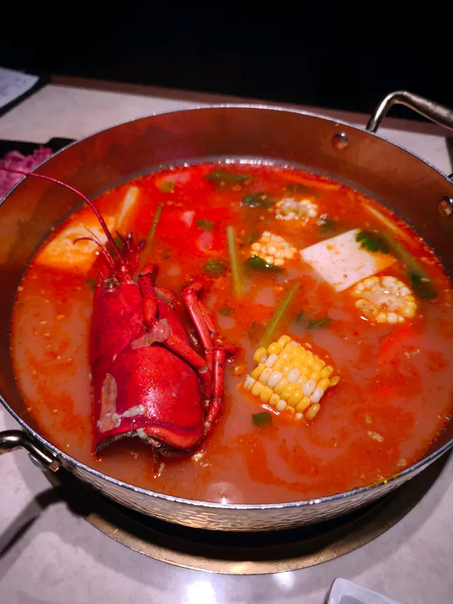 這道湯底選用了龍蝦頭熬煮而成,湯底鮮甜濃郁,每一口都散發出濃厚的海洋氣息。