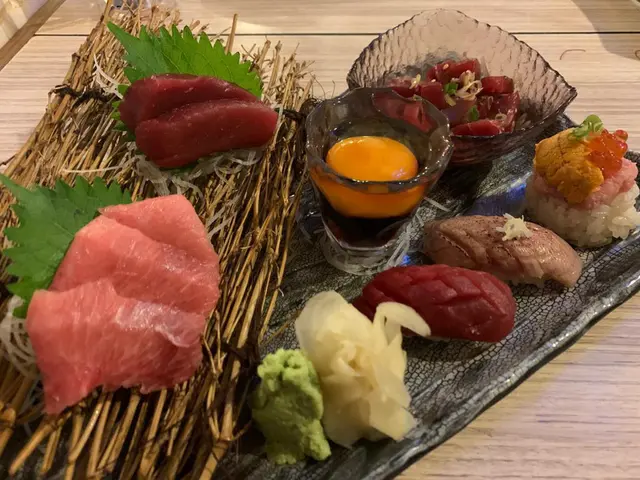 精緻的吞拿魚盛合刺身, 有吞拿魚刺身, 燒三文魚, 濃香的海膽拼吞拿魚蓉及三文魚籽壽司飯, 多重口感, 鮮味活醒味蕾