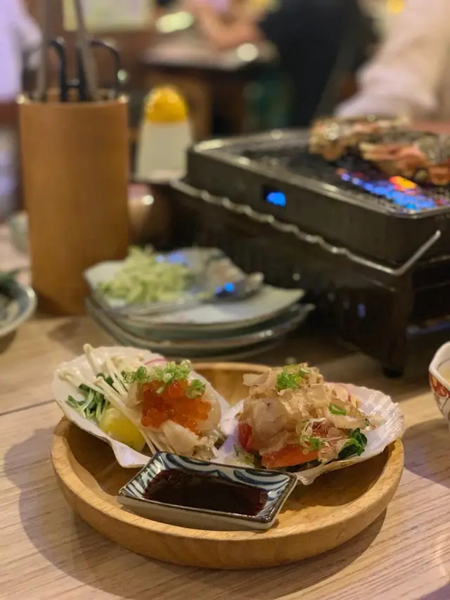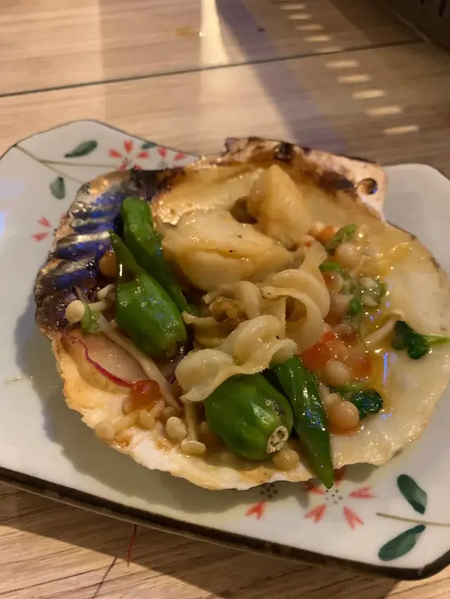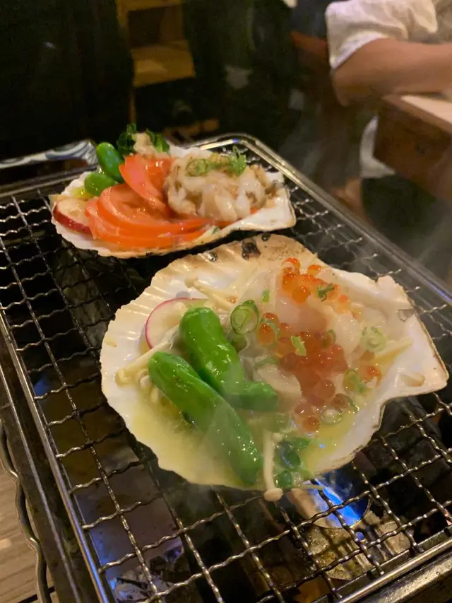 最後的木魚帆立貝殼燒及文魚籽帆立貝殼燒 - 第一次食燒的三文魚籽, 味道口感獨特, 不看著真想像不到是三文魚籽; 燒帆立貝特意配合清新的蔬菜, 不會搶了主角的鮮味之餘更加豐富了味道, 有心思.