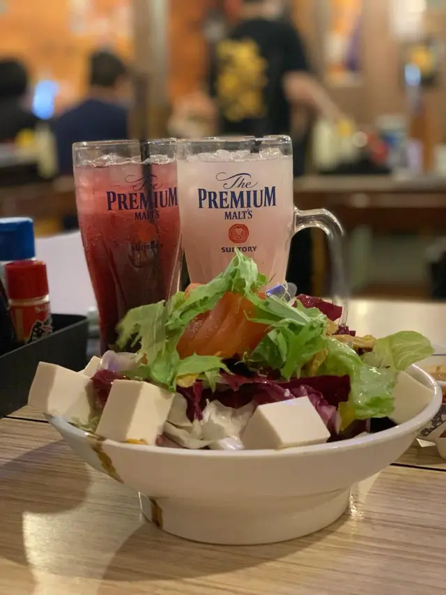 朋友一早諗好吃什麼, 我就乖乖等食。先來麻醬蕃茄豆腐沙律及辣味豆腐, 兩種折然不同食法, 但一樣好味 ; 加多兩杯巨峰乳酸及梳打, 好開胃