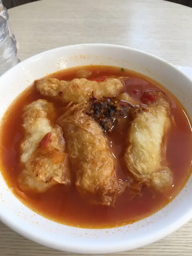 食完會有點口渴的香濃蕃茄麵 Twinkle_EllyLevel 32018-11-12191 views Follow 一個人食個快Lunch,叫了墨魚卷蕃茄麵,有數款蕃茄湯底可以選擇, 愛辣之人叫了麻辣蕃茄湯,感覺頗新奇, 跟餐加了一支豆漿,都只是5蚊咋,又幾抵飲。 麻辣蕃茄湯其實就是蕃茄湯加了一些辣椒醬, 墨魚卷有四大條,好抵食。 麵條是紅色的蕃茄麵,和一般麵條差不多,比較彈牙。墨魚卷口感欠佳,粉比例較多,只有很少量的墨魚肉。 豆漿有黑白兩款,我點了白豆漿。 埋單盛惠$52,價格中等。 不過食完之後,一直好口渴丫,當天下午飲了很水, 味精應該好重手。The above review is the personal opinion of a user which does not represent OpenRice's point of view.LikeShare食完會有點口渴的香濃蕃茄麵 正品蕃茄湯麵店 https://s.openrice.com/QrKT0rman00Report Post Ratings3Taste3Decor2Service2Hygiene3ValueDining MethodDine In