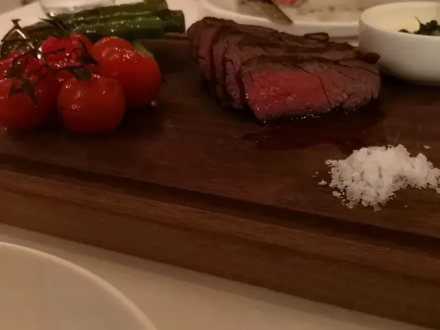 喂...其實呢個係好味的.....但前菜太厲害....加上我對紅肉嘅熱誠唔大, 呢個我男朋友ko多, 我就食d配菜 XDDD......我叫呢個蕃茄仔做噴汁蕃茄仔....因為真係超juicy....啱啱拍緊拖嘅小心d....因為juicy程度係真係可以噴到去對面 XDDD.....講返舊肉, 因為質量已經係好, 唔需要調味都已經好好味~