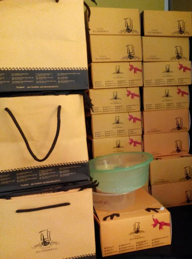 店員包好蛋糕, 又好細心地解說如何把蛋糕解凍及如何處理未吃的蛋糕。
