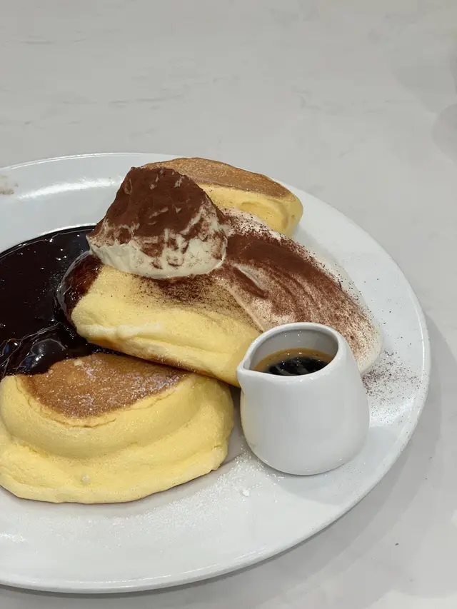 Tiramisu pancake就仲離譜😂甜到阿媽都唔認得🫠邊有Tiramisu係咁甜嘅…pancakes 質地就唔使講啦 都係咁硬淨 仲有啲朱古力粉灑到碟邊都係 搞到隻碟好污糟👎🏼