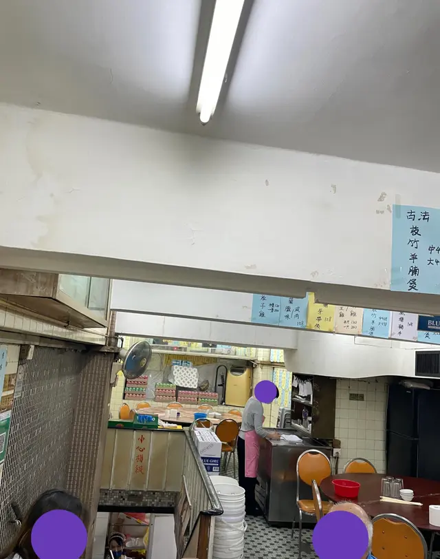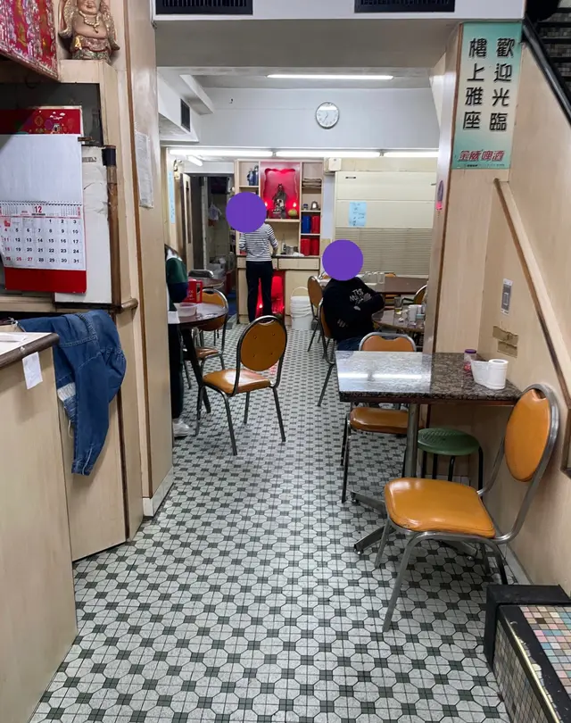 扶着有幾分似電梯扶手的樓梯扶手,及至舊樓閣樓,本就預定隔音差,食客高談闊論聲浪都困於低樓底之下,在場沒人猜拳、髒罵聲,已屬萬幸。古色古香、七八十年代的地磚裝潢等算是保持得狀態不錯,枱與枱之間擺放是極盡可攝盡攝之能事,有機會椅背貼椅背。