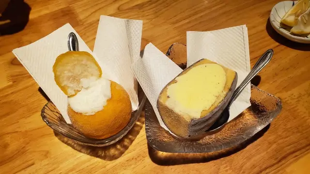 朋友點了蕃薯雪糕朋友真的好有蕃薯味,而我點了柚子雪芭,味道清新,可說是一個Happy Ending!