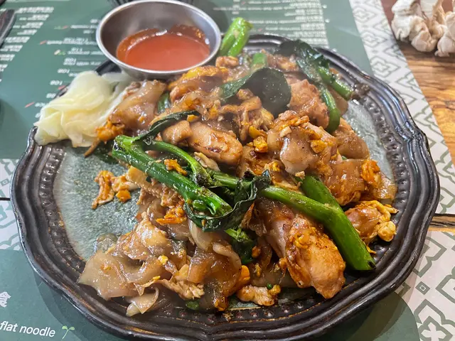 然後佢就再嚟埋個炒河粉,河粉咁味其實幾好食,但係個河粉就比較黐口,同食開嘅泰國炒河唔一樣,唔知係咪佢嘅特色,自己都係鍾意傳統嘅泰國炒河粉多啲,個雞嘅話就非常一般。