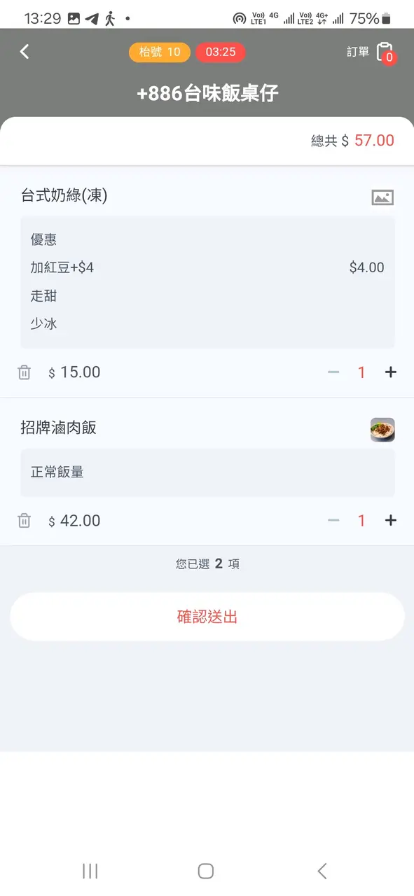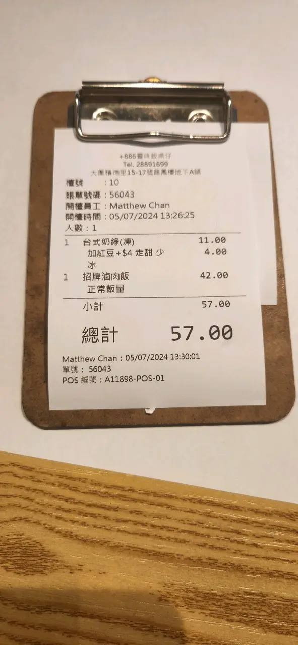 食物一般,飯微暖,飲品好味,冷氣太大,座位細 moonsilverLevel 32024-07-0684 views Follow 今日晏就想食台灣嘢,記得呢條街有間細台灣餐廳就嚟試試。今次要咗個招牌滷肉飯+凍台式奶綠(加紅豆),盛惠$57。招牌滷肉飯($42):份量啱啱好,對大食既人嚟講份量有點細,滷肉份量適中,少少甜,有半條青菜,2塊薄魚餅,唯一唔好係飯温度唔夠熱,只係微温。凍台式奶綠、走糖($11)+配紅豆($4),合供$15。本來想要珍珠奶綠,但竟然無哂珍珠?於是揀咗紅豆配料,飲品味道ok,入口幾滑,杯面有少少沖出嚟既奶泡。環境:舖頭面積細,座位窄,頭頂部冷氣機直吹,温度太凍,十幾分鐘內食完已經想走,唔想逗留。整體味度ok。台式滷肉飯+凍台式奶綠(配紅豆)$57台式滷肉飯$42台式滷肉飯$42台式奶綠(凍)走糖、配紅豆1The above review is the personal opinion of a user which does not represent OpenRice's point of view.LikeShare食物一般,飯微暖,飲品好味,冷氣太大,座位細 +886 台味飯桌仔 https://s.openrice.com/QrKT09RbK00Report Post Ratings4Taste3Decor4Service4Hygiene3ValueRecommended Dishes台式滷肉飯+凍台式奶綠(配紅豆)$57台式滷肉飯$42台式滷肉飯$42台式奶綠(凍)走糖、配紅豆Date of Visit2024-07-05Dining MethodDine InSpending Per Head$57 (Lunch)