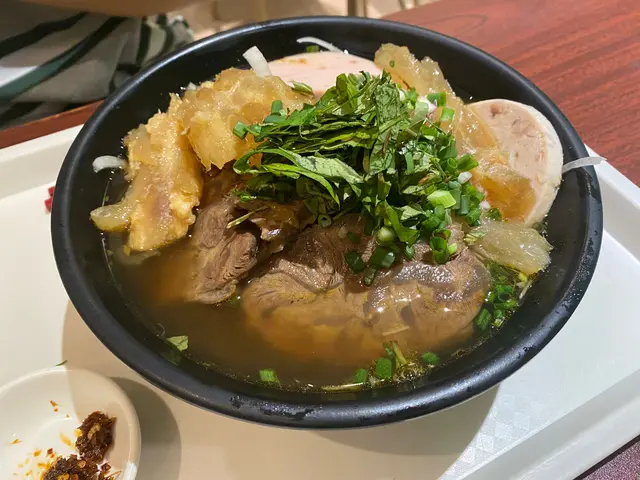 除了冷的麵食,我們也點了熱的順化牛腱河粉($85)。湯底牛味不算很濃,調味過甜,配菜有牛𦟌、牛筋和扎肉,牛類都燜得夠淋容易入口,是琳瑯滿目的一碗麵。