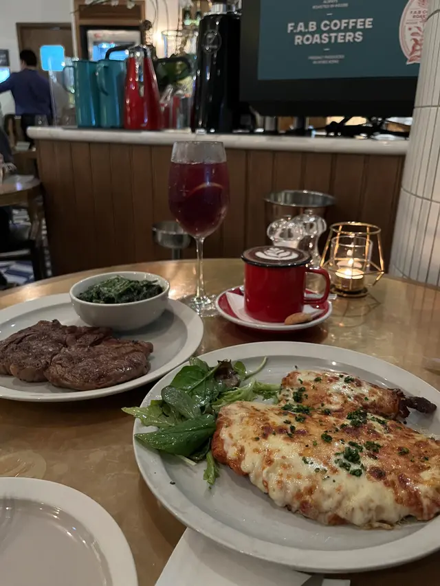 朋友叫既Chicken Parmigiana,份量超多,有兩大塊雞,上面仲舖滿左芝士,超肥仔!雞肉唔鞋,而加連沙律菜都好好食,好香橄欖油味~ 但私心推薦牛多啲🤣