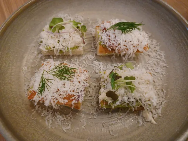 叫咗呢個 ⇒ 意式牛油果蟹肉及煙三文魚多士$ 92,面頭鋪滿芝士, 味道唔錯, 不過就冇乜牛油果味啦。