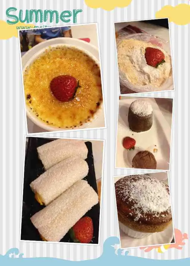 食左5樣嘢,先講焦糖布丁,朱古力心太軟,木槺布丁,芒果糯米卷。四樣都唔錯,好幼滑。甜度亦適中。木槺布丁更加係非常香滑!