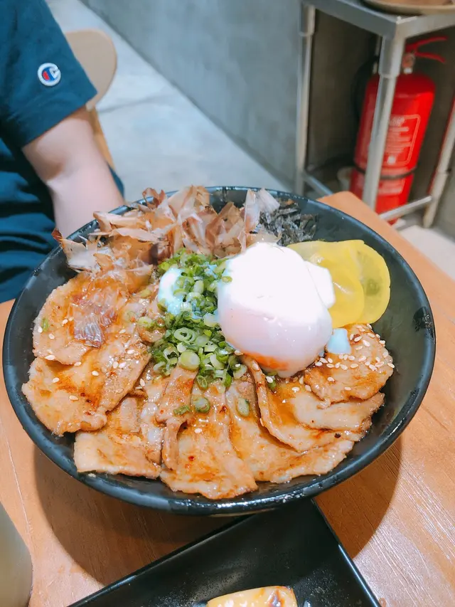 ,最後我選了黑松露,味道不錯,很creamy,但好飽。男朋友則叫了鹽燒豚肉丼。