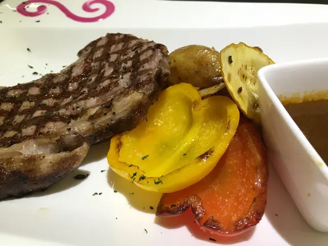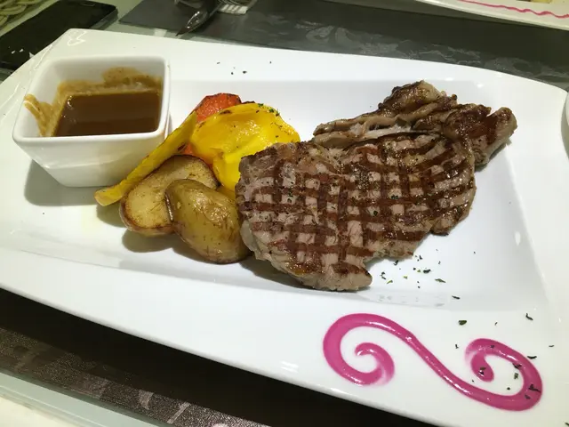 安格斯西冷牛,叫咗七成熟,切開裏面係見到紅色嘅,好香,好有肉味,食得出係一塊高質素嘅扒,但略嫌外面就整得太熟,歸咎塊扒薄左些