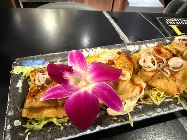 -鐵板鵝肝,配上炸雲吞皮,油脂爆燈,香脆美味。
