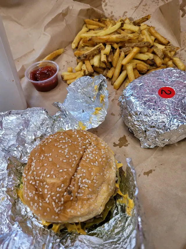 講到喺美國咁出名,咁未試過點都要試下嘅,星期日下午2點左右都有位坐,唔太多人,我地選擇咗cheese burger& bacon burger &薯條,呢度冇套餐得單點