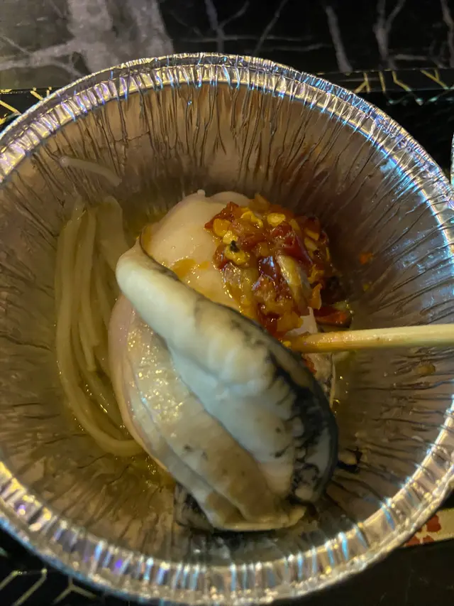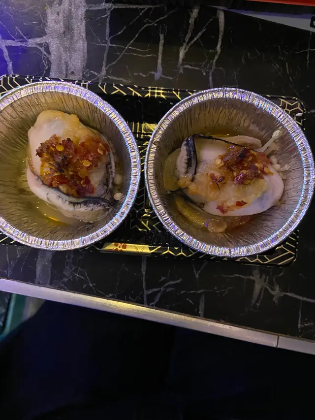 用錫紙杯盛載連同金菇墊底燒烤,保留原汁原味,仲有-口蠔水喝到😝