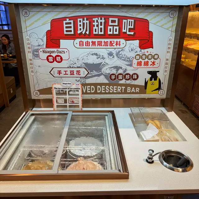 甜品區絕對係亮點!有自製刨冰任你配芋圓、白桃、桃膠同愛玉,仲有手工豆腐花、黑糖布丁同任食Häagen-Dazs雪糕,完美結束呢個豐富嘅壽喜燒盛宴👍🏻