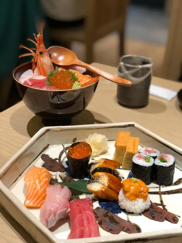 見到個餐牌密麻麻都唔知食乜嘢好,樣樣都想試真係魚與熊掌!最後懶得諗都係直接叫個壽司拼盤八貫,朋友就叫咗個海鮮魚生丼!