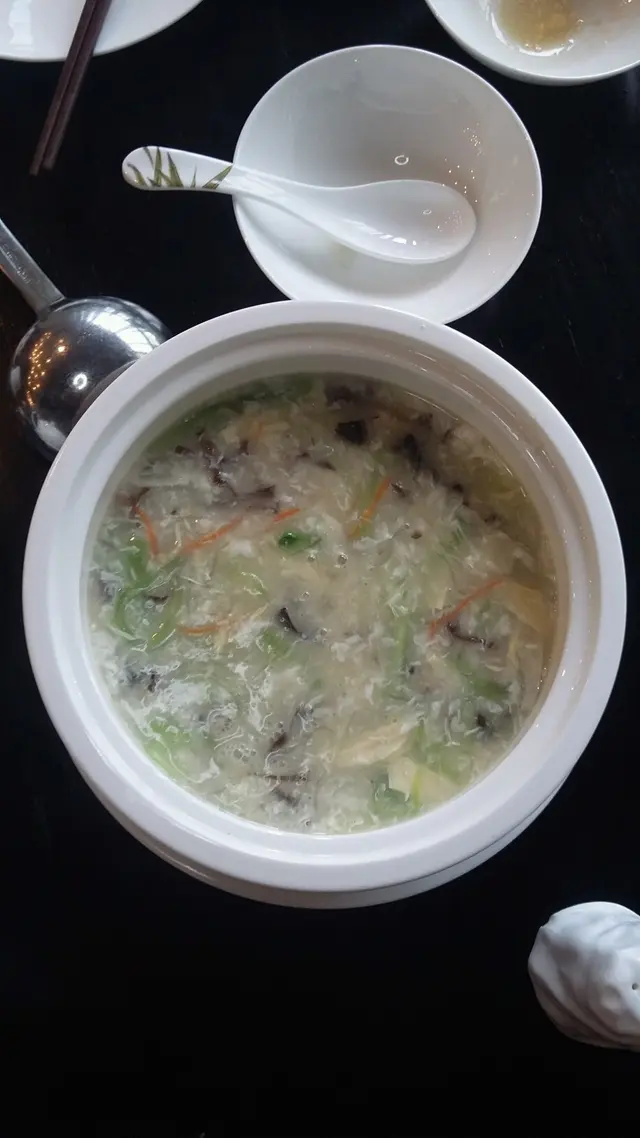 看見很多食評都有提到他們的魚湯非常好飲, 看得我口水直流, 但我在看餐牌的時候, 好像不太看到食評中那個魚湯, 因為開始肚餓了, 所以當我看到有魚蓉羹的時候, 就決定叫來試試看。 上枱了, 看到羽絨真的內容很豐富, 有好多唔同嘅食材搭檔。 味道方面也拿捏得很平均,不偏鹹,不偏淡,富魚香。 熱配搭的食材切的大小以致軟硬度也很恰當,為魚蓉羹添色不少, 增加了羽絨真的複雜度,口感,和層次。鮮而香。 熱辣辣,正。