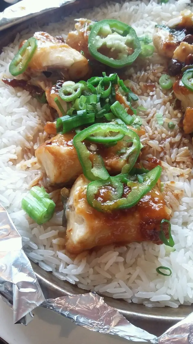 面頭腩淋以麵豉煮的汁略嫌不夠, 飯有硬度, 煙韌而口感十足。