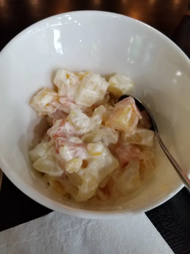沙律-唔太特別,有普通啲雜果同薯仔,沙律醬味道偏甜
