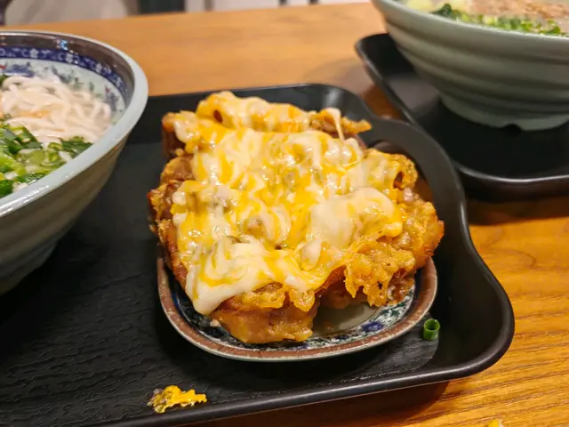 今次同朋友嚟都係叫咗兩個套餐,包括一款主食一碗小食同一杯飲品,我叫咗起司雞扒麵,湯底十分好食,有啲蔥花同炸蒜配搭一齊,雞扒超多芝士喺面上,好適合鍾意食芝士嘅人,所以我就覺得非常好食,雞扒都炸得好香脆,雞扒連皮都十分好食內嫩外脆,裏面仲有兩條白菜仔。😊